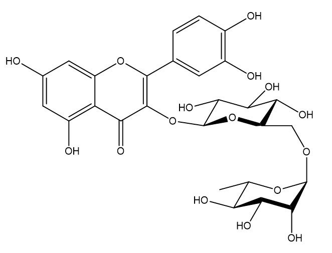 Rutin is a glycoside of the flavonoid quercetin. As such, the chemical structures of both are very similar,with the difference existing in the hydroxyl functional group. Both quercetin and rutin are used in many countries as medications for blood vessel protection, and are ingredients of numerous multivitamin preparations and herbal remedies.